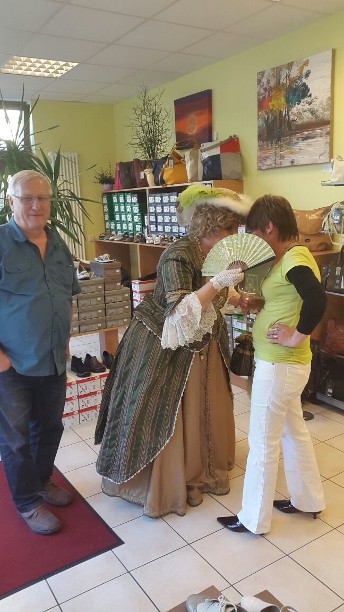Renata Linné und Ramona Hellmann mit Gästen vor Schuhmoden Horn.
