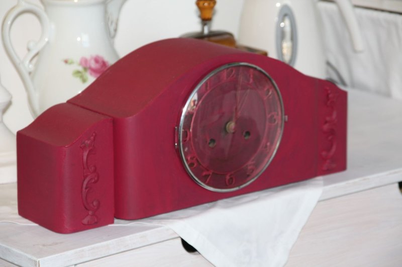 Der alten Kaminuhr habe ich einen modernen Anstrich verpasst. Sie ist noch nicht ganz fertig, aber sie tut ihr Werk und hat einen schönen Klang.