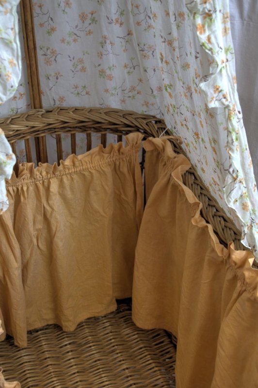 Die Innenmaße des Körbchens: B 49, L 91, H 45 cm. Körbchen ist der wohl berechtigte Begriff, denn der Stubenwagen ist aus solidem Weidengeflecht gefertigt. Ganz kurz hatte ich überlegt, ihn neu zu streichen, dies aber beim genaueren Begutachten sofort verworfen. Ich würde ihm seinen ursprünglichen Charme rauben und so steht er nun mit frisch gewaschenem Nestchen und Himmel bei mir im Laden und wartet darauf, den Schlaf des nächsten Babys zu beschützen.