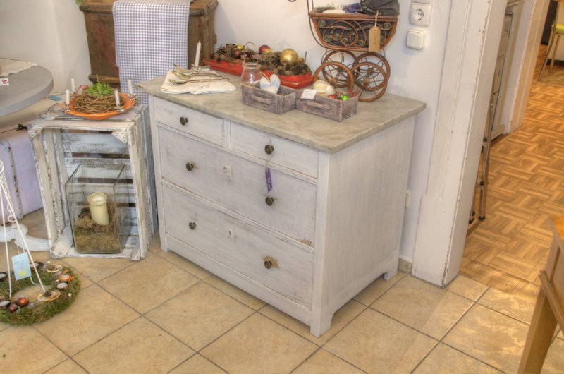 Im Lädchen gibt es auch einige Neuigkeiten, auf die Du gespannt sein darfst. Treu dem Motto "Shabby macht happy" habe ich wieder alten Möbeln einen neuen Anstrich verpasst. Eine urige Kommode mit vier Schubladen und einer schweren Marmorplatte wartet im Lädchen auf ihren neuen Besitzer.